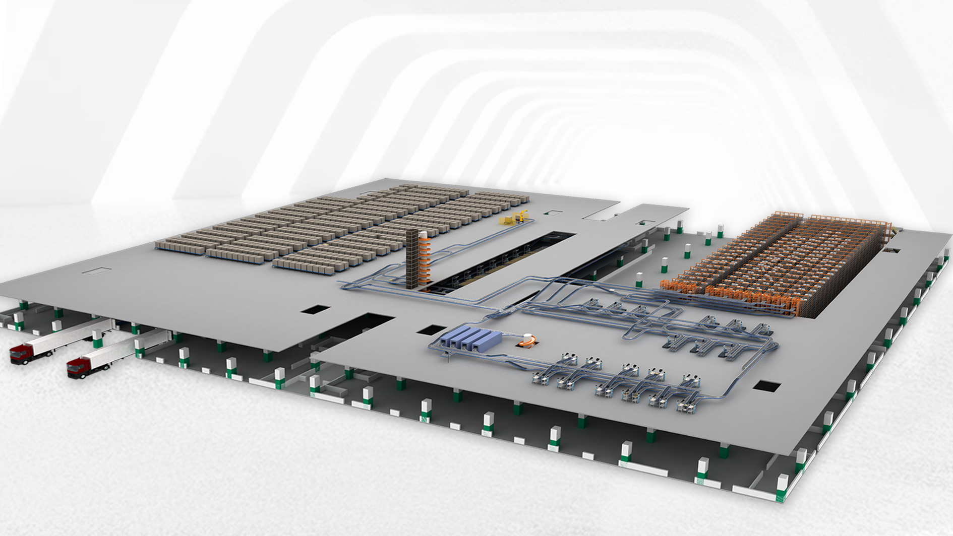 整體項(xiàng)目分兩期建設(shè),一期面積6.7萬平米,知足2025年日均處置懲罰剛性需求;二期工程為未來生長提供擴(kuò)展空間。一期項(xiàng)目共四層,跨層提升機(jī)、螺旋提升機(jī)將所有樓層都毗連起來,更是為3樓、4樓后期的全自動化刷新預(yù)留了接入口。